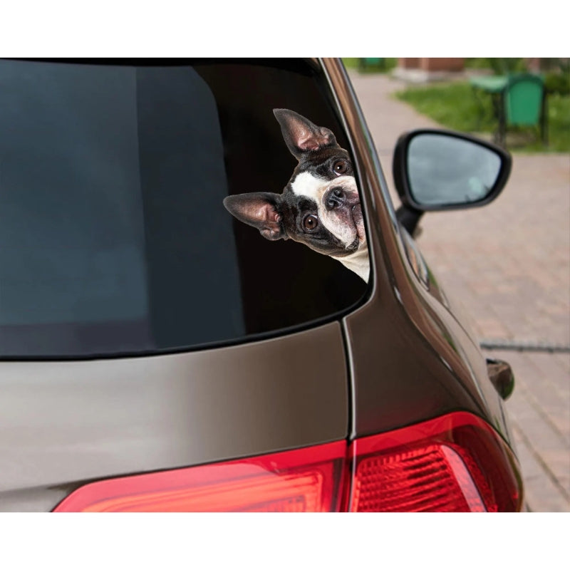 Boston Terrier Dog - Peekaboo Dog Head Car Sticker - DS020