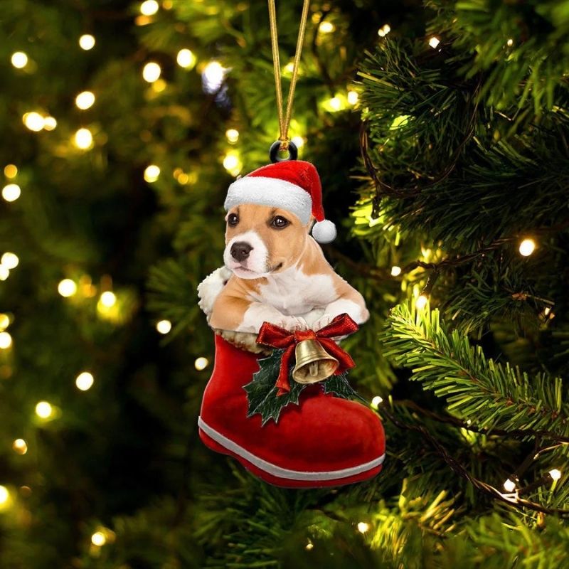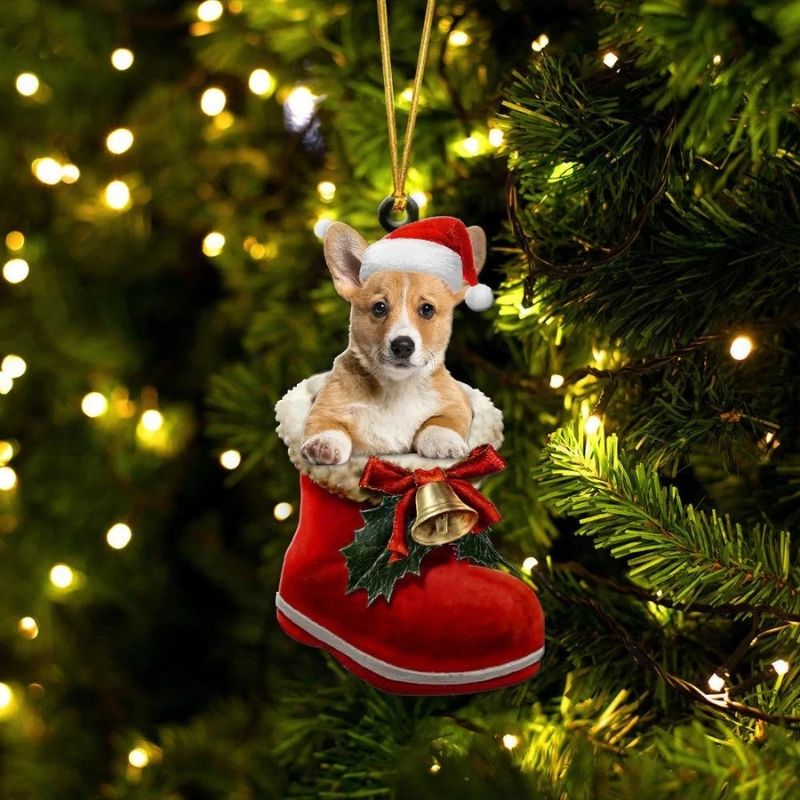 Pembroke Welsh Corgi Red & White In Santa Boot Christmas Hanging Ornament SB177