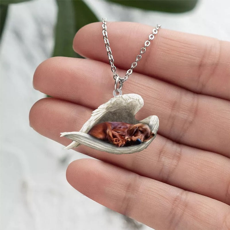 Irish Setter Sleeping Angel Stainless Steel Necklace SN071