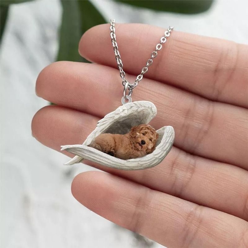 Goldendoodle Sleeping Angel Stainless Steel Necklace SN096