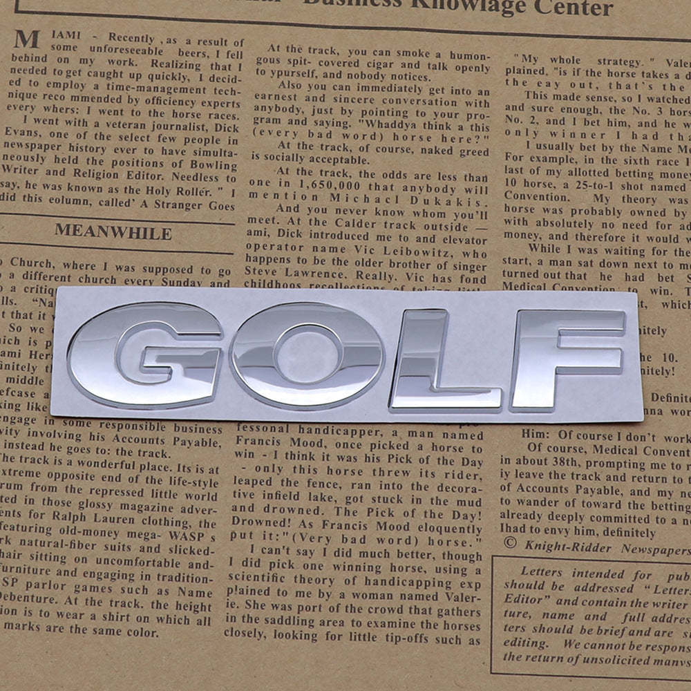 Add a touch of humor and personality to your vehicle with the "Golf" 3D Badge Stickers. These fun, eye-catching badges are perfect for cars, trucks, SUVs, motorcycles and more. Made from durable and sticky zinc alloy, these high-quality badges are easy to apply and are designed to enhance the style and smarts of your vehicle.