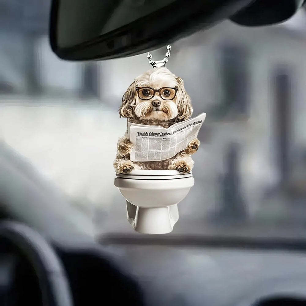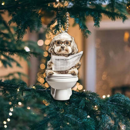 Designed for pet lovers with a sense of humor, this Dog Sitting On Toilet Ornament is perfect for hanging on your Christmas tree, car rearview mirror, desk, or anywhere a laugh is needed. It also makes a great gift for friends, family, or anyone who loves dogs and quirky decor.