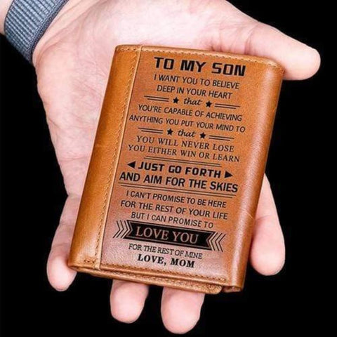 🎁If you've been searching for the perfect gift for your Son/Grandson, these NEW Laser Engraved leather wallets are just what you've been looking for! 💖 It is durable and practical but also is able to convey the meaning of your love. This wallet will surely melt his heart.