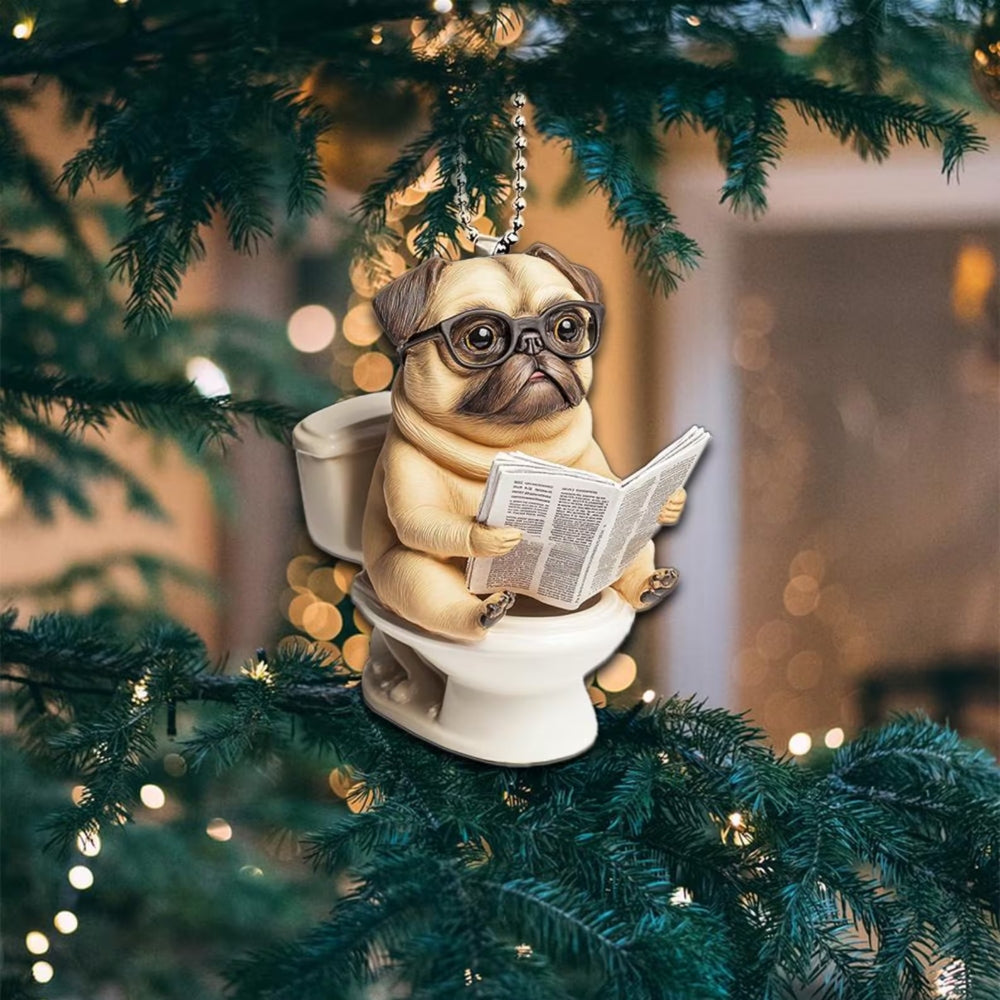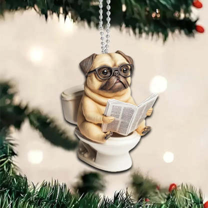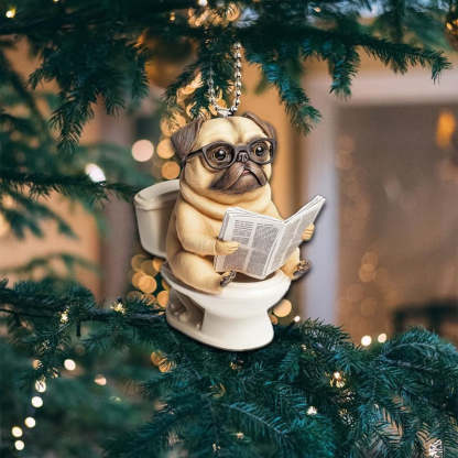Designed for pet lovers with a sense of humor, this Dog Sitting On Toilet Ornament is perfect for hanging on your Christmas tree, car rearview mirror, desk, or anywhere a laugh is needed. It also makes a great gift for friends, family, or anyone who loves dogs and quirky decor.