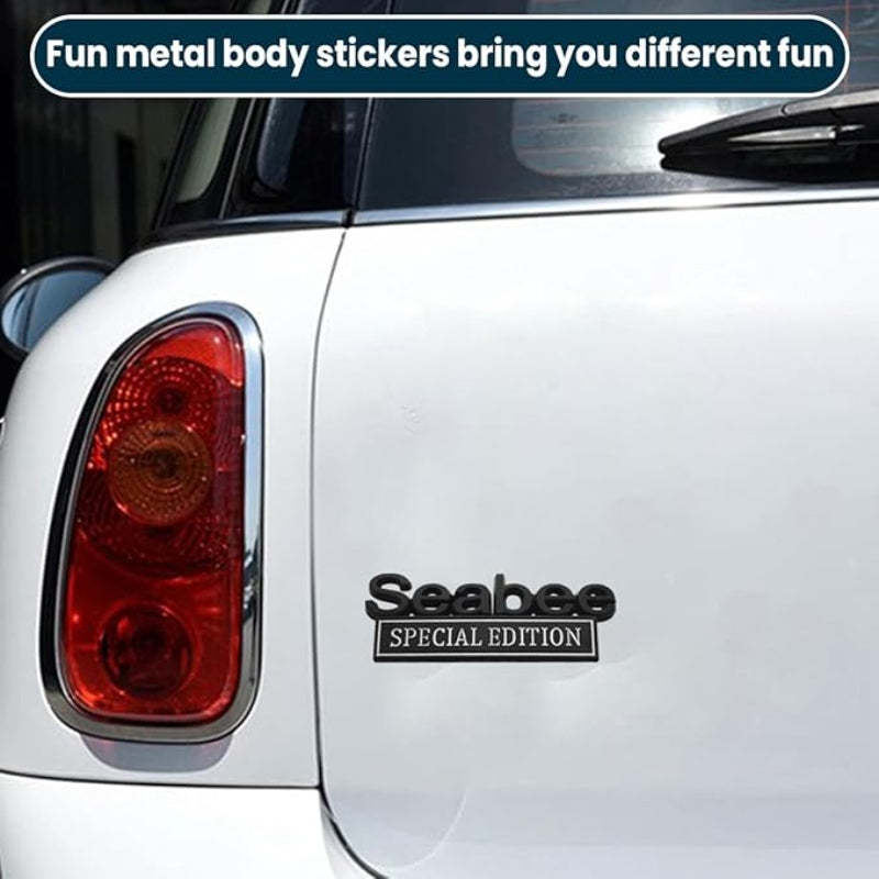 Add a touch of humor and personality to your vehicle with the "Sea Bee Special Edition" 3D Badge Stickers. These fun, eye-catching badges are perfect for cars, trucks, SUVs, motorcycles and more. Made from durable and sticky zinc alloy, these high-quality badges are easy to apply and are designed to enhance the style and smarts of your vehicle.