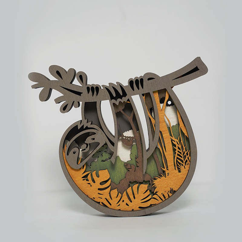 When people are talking about sloths, the image of them hanging on a tree comes to mind. That's also what comes to our designer's mind. We took the silhouette of a sloth hanging on a tree branch, making it a classic sloth position. For the inside design, since they live in tropical areas, We used tropical leaves and trees as the background to mimic its habitat. Also, don't miss that little sloth hanging on a tree inside.