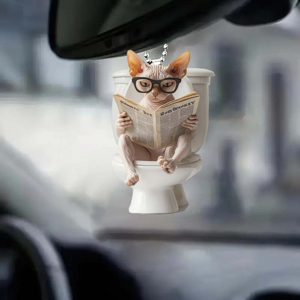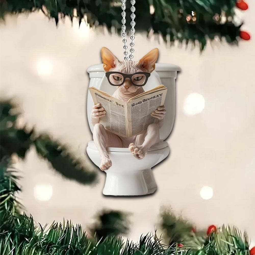 Sphynx Cat - Dog Sitting On Toilet Ornament OT038