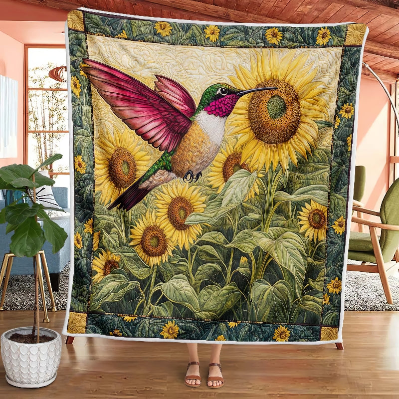Sunflower Bliss Hummingbird Blanket - H240 - Premium Blanket