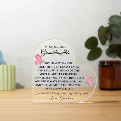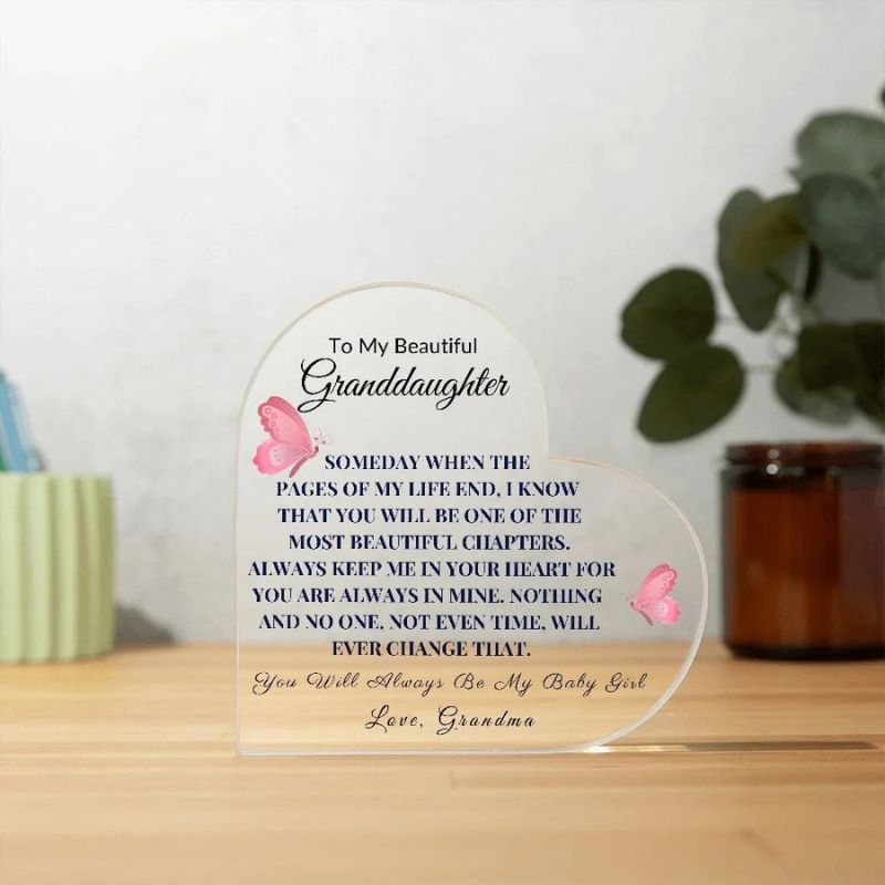 Introducing our Printed Heart Shaped Acrylic Plaque: A Heartfelt Expression of Love For Your Granddaughter!