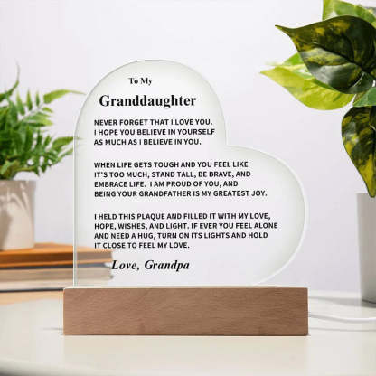 - 1 x To My Granddaughter - LED Heart Acrylic Plaque With Wooden Base