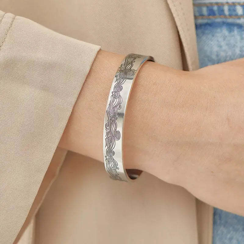 - The cuff bracelet is made of 316L stainless steel, stronger and more durable, will never fade, tarnish, corrode, stain, or cause allergic responses. Nickel-free, 100% in harmony with the wrist.