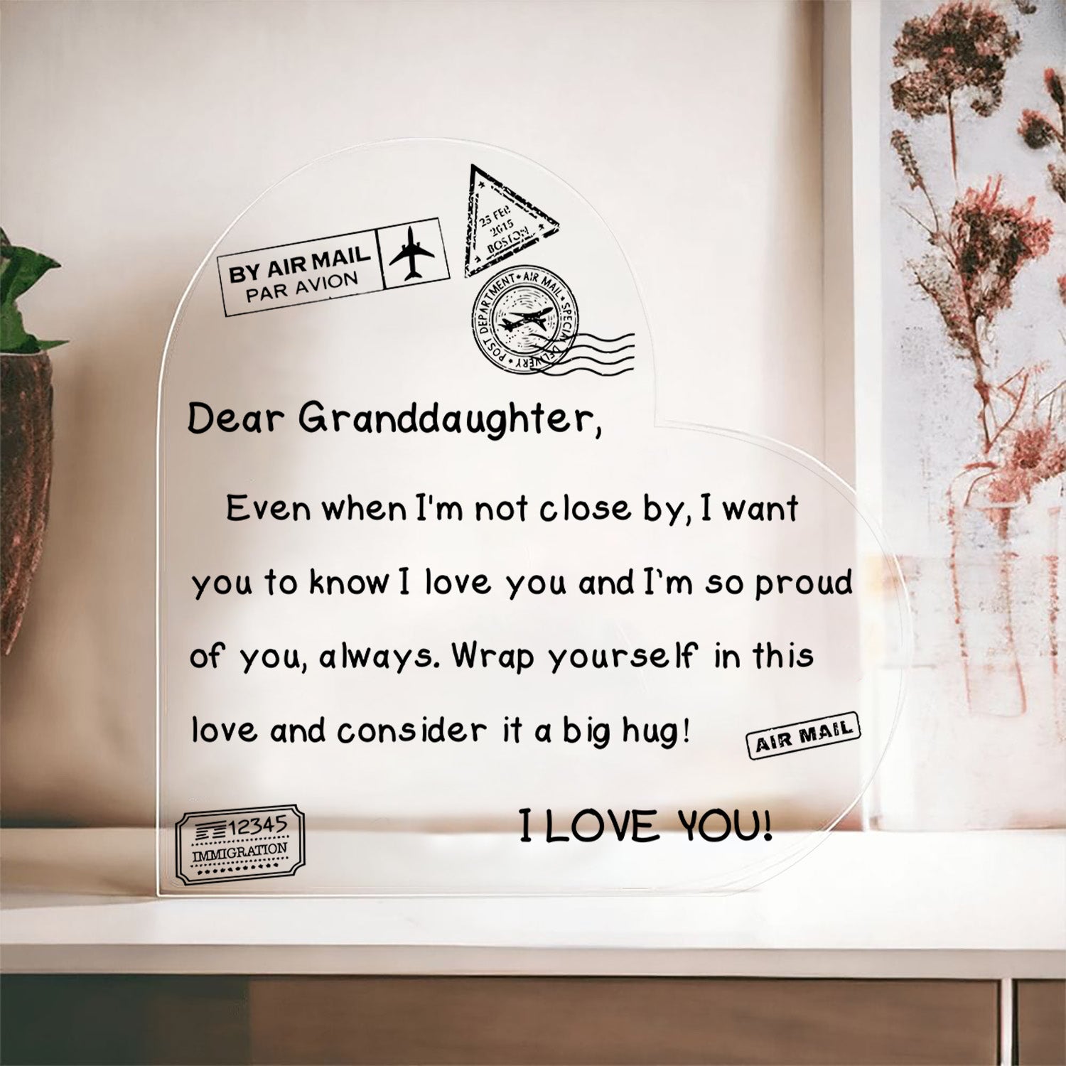 Don't miss the opportunity to let your Granddaughter know just how much mean to you. Purchase our Printed Heart Shaped Acrylic Plaque today and let your emotions shine through!