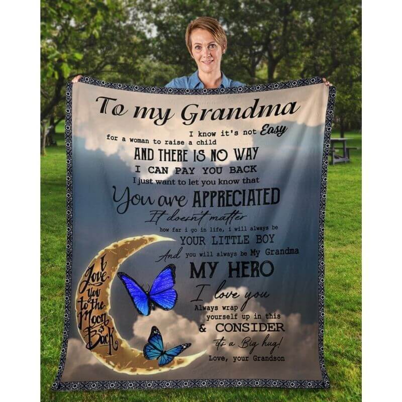 To My Grandma - From Grandson - Butterfly A314 - Premium Blanket