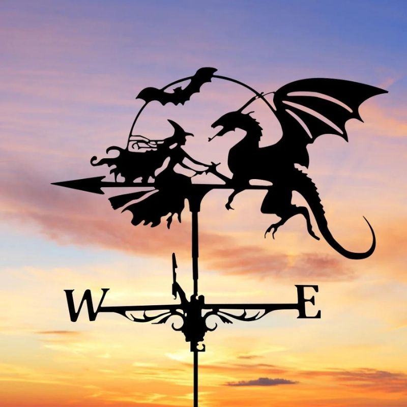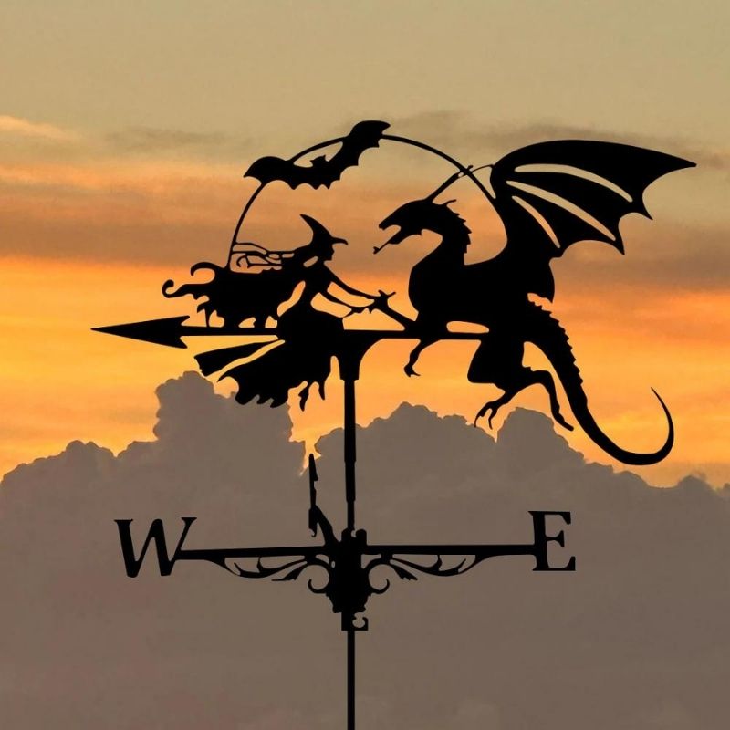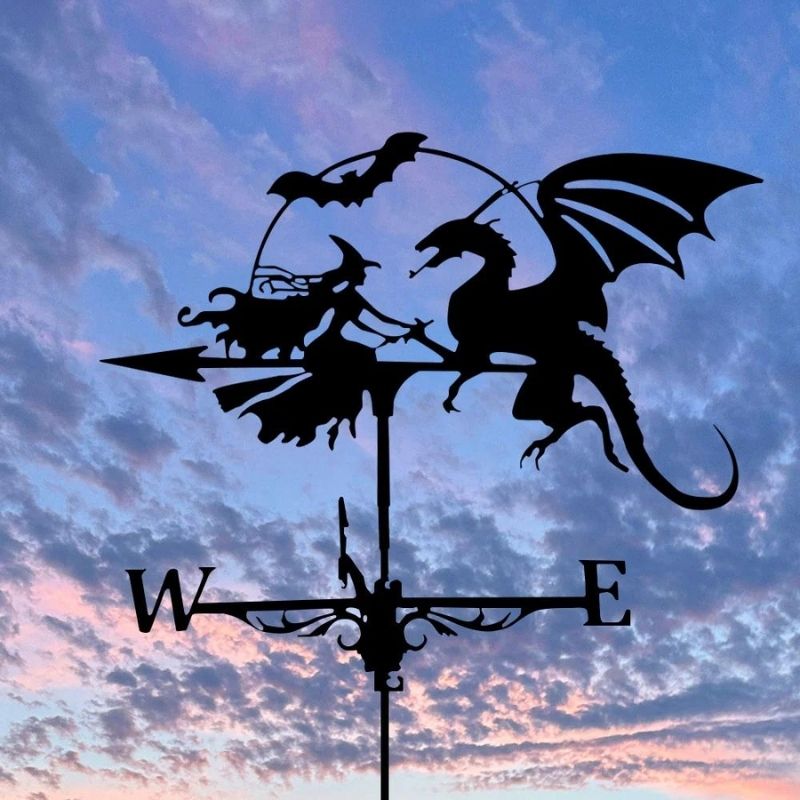 Witch and Dragon Stainless Steel Weathervane MW020
